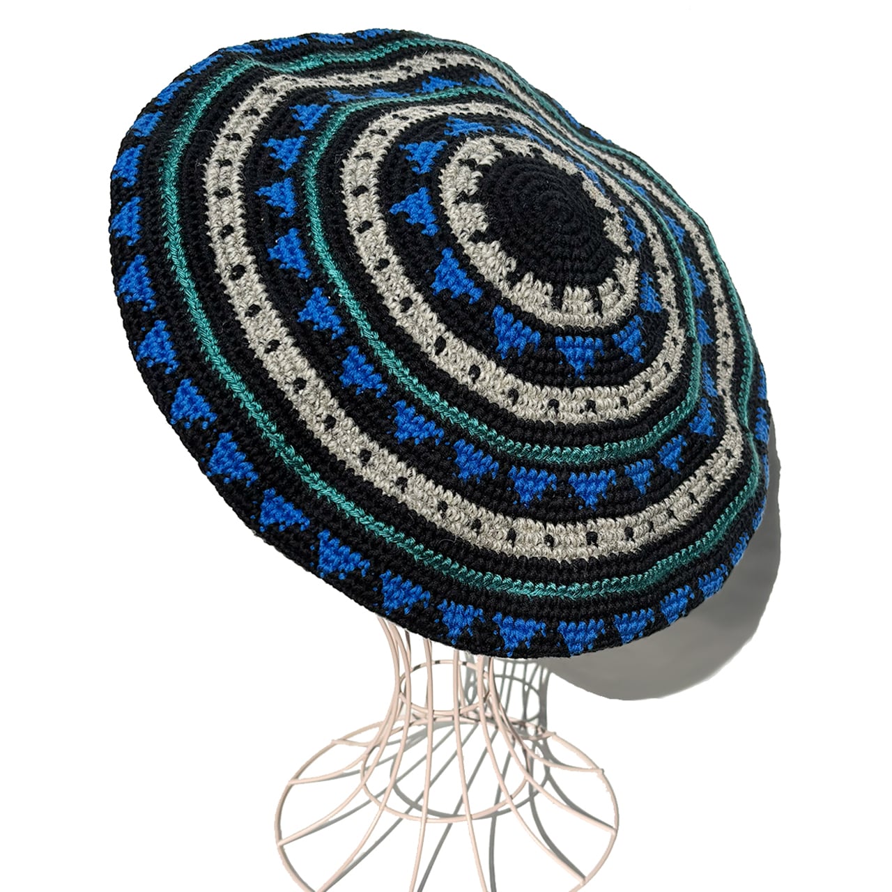 かぎ針編み、オリジナルギザギザ柄のクロシェタムベレーです(^^)