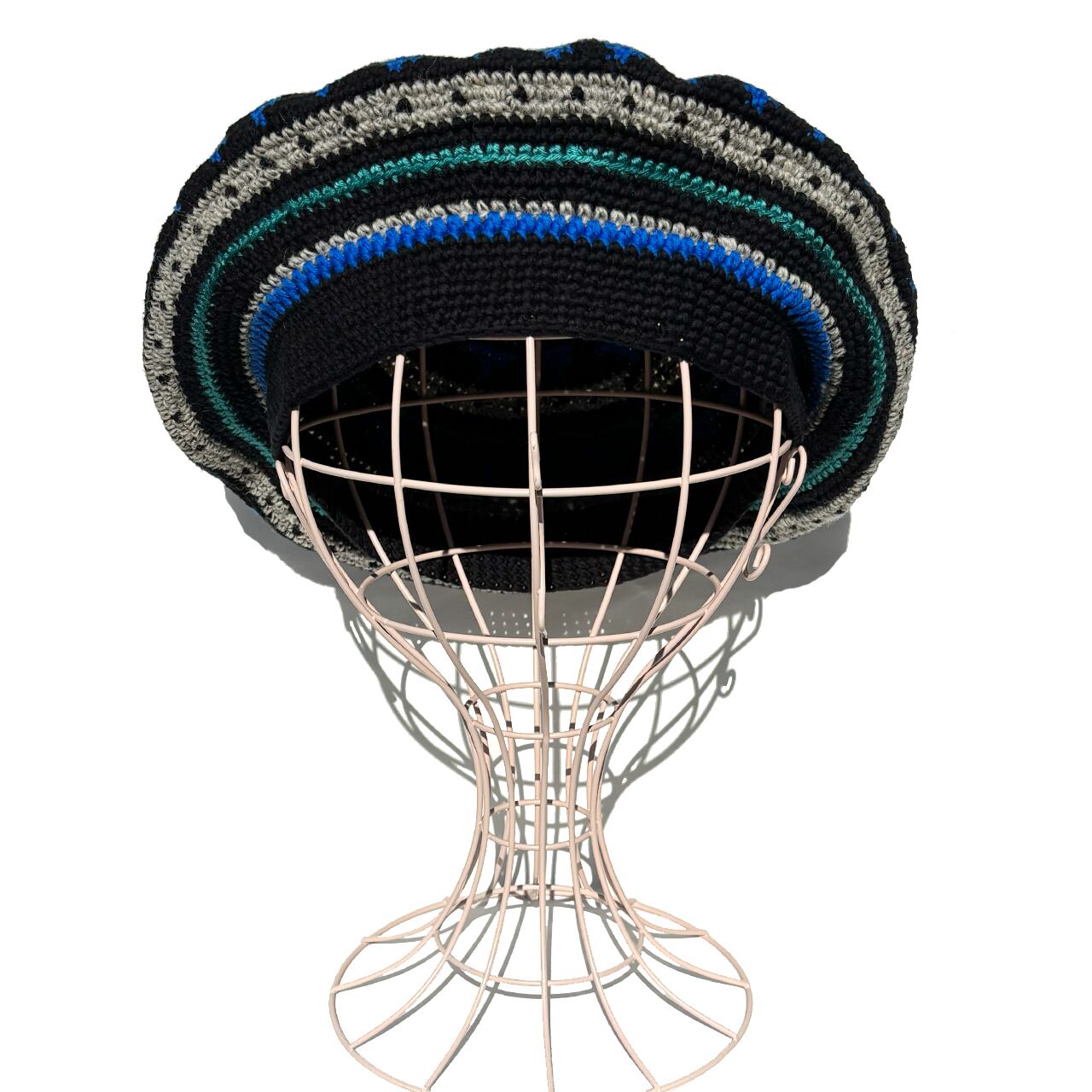 【クロシェタム】ギザギザ ボーダー タム ベレー BLUE×GREEN