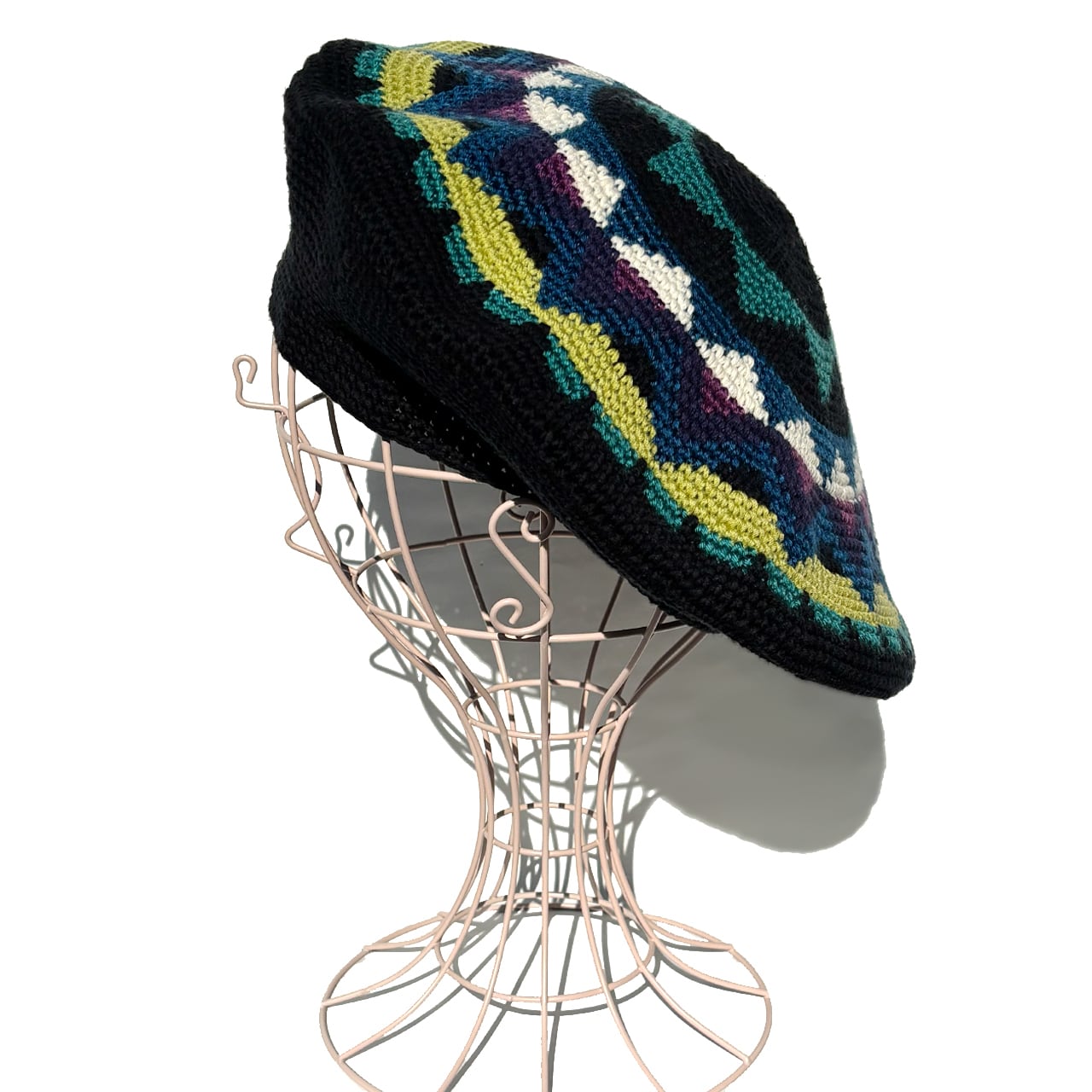 かぎ針編み、オリジナルギザギザ柄のクロシェタムベレーです(^^)