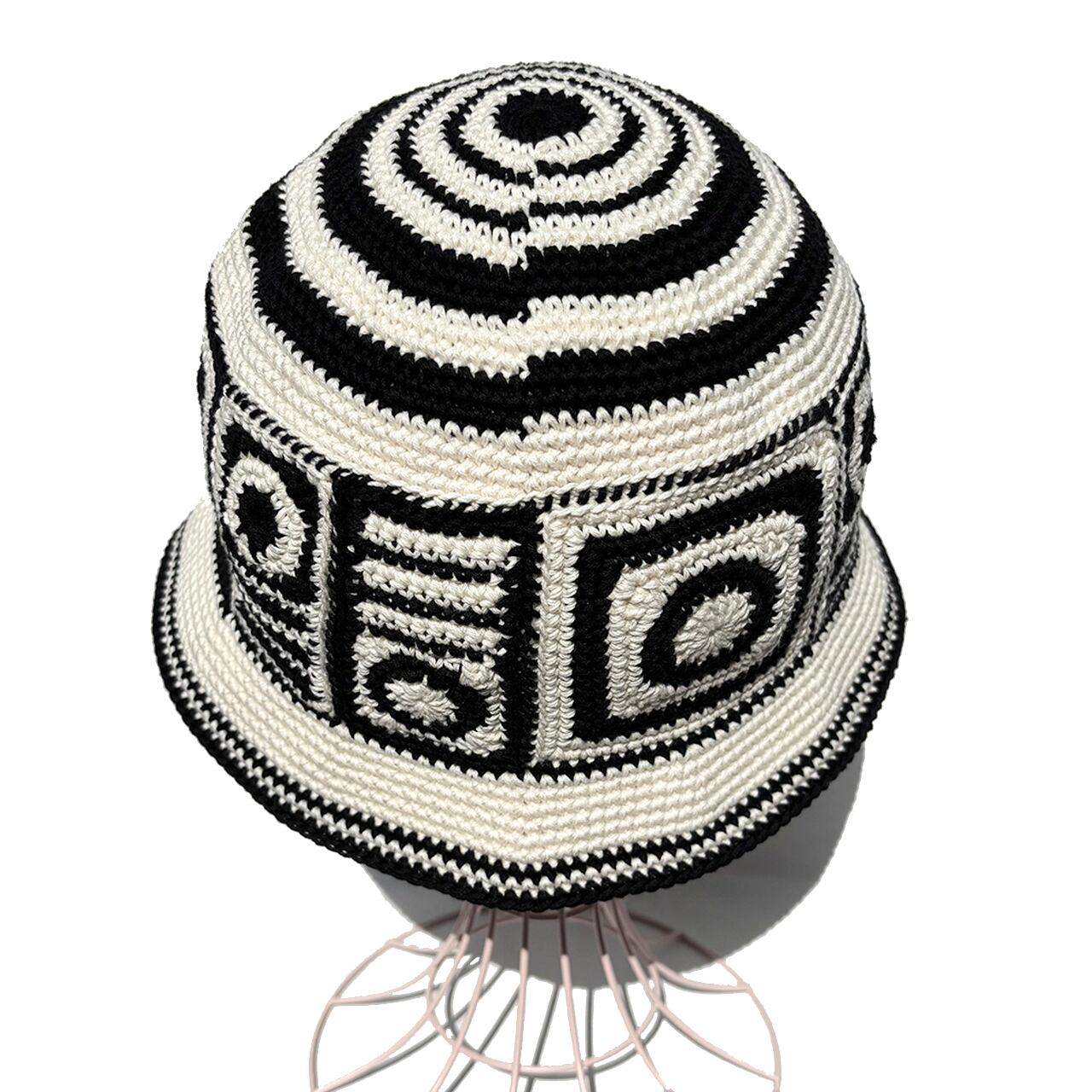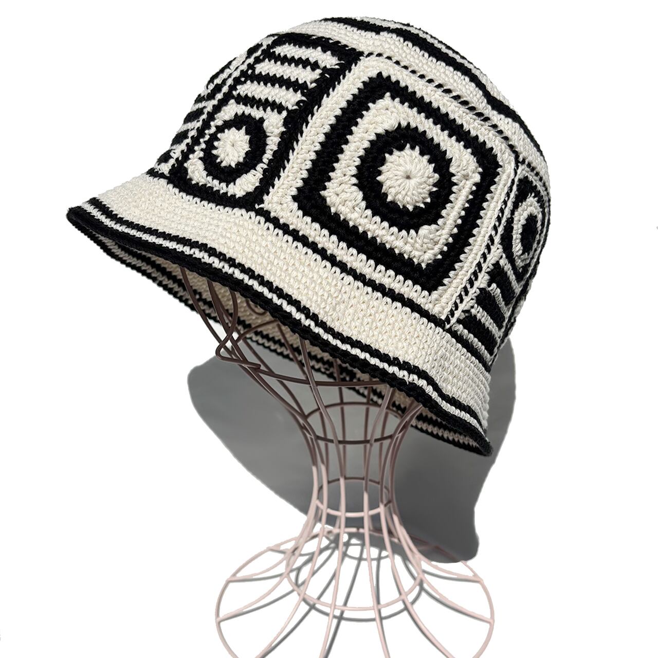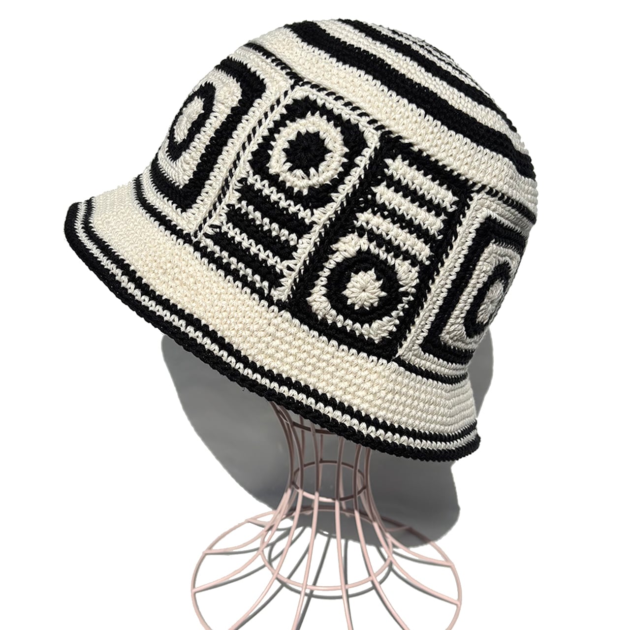 【クロシェハット】かぎ針編み CIRCLESTRIPES バケットハット OFF×BLACK