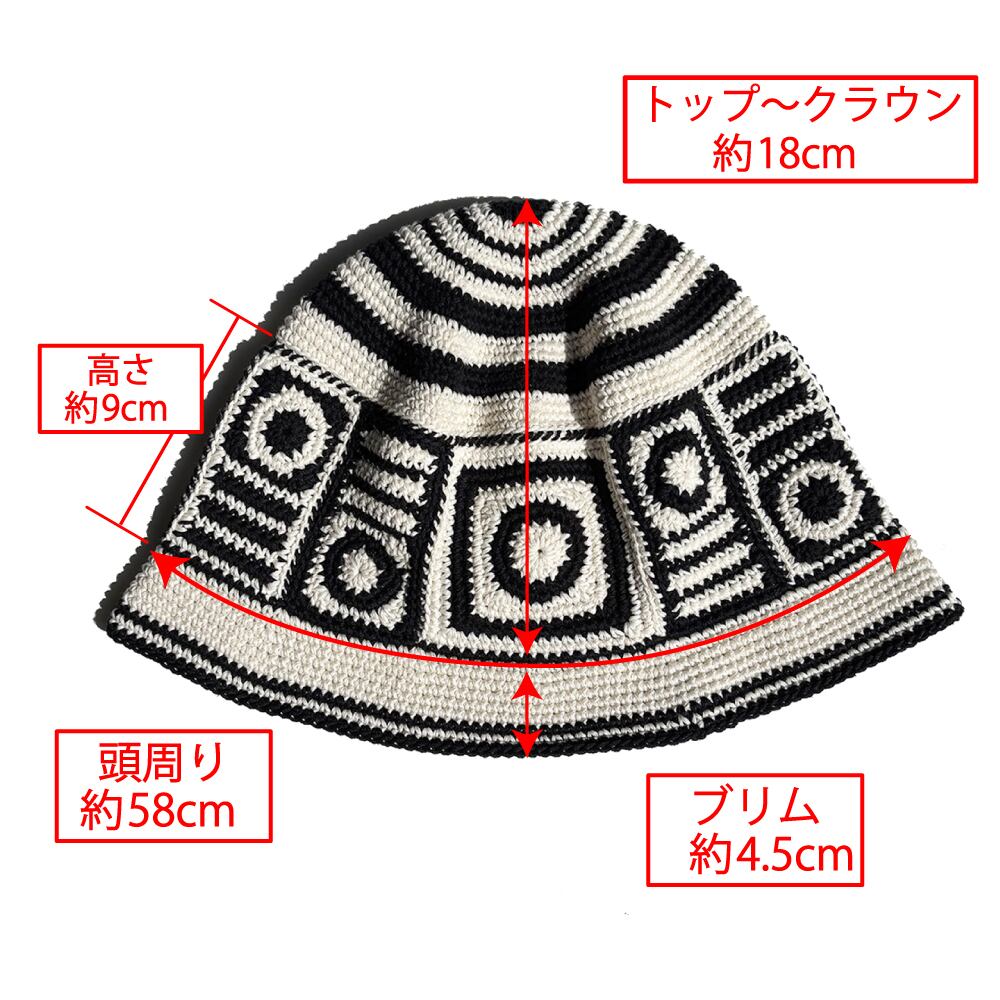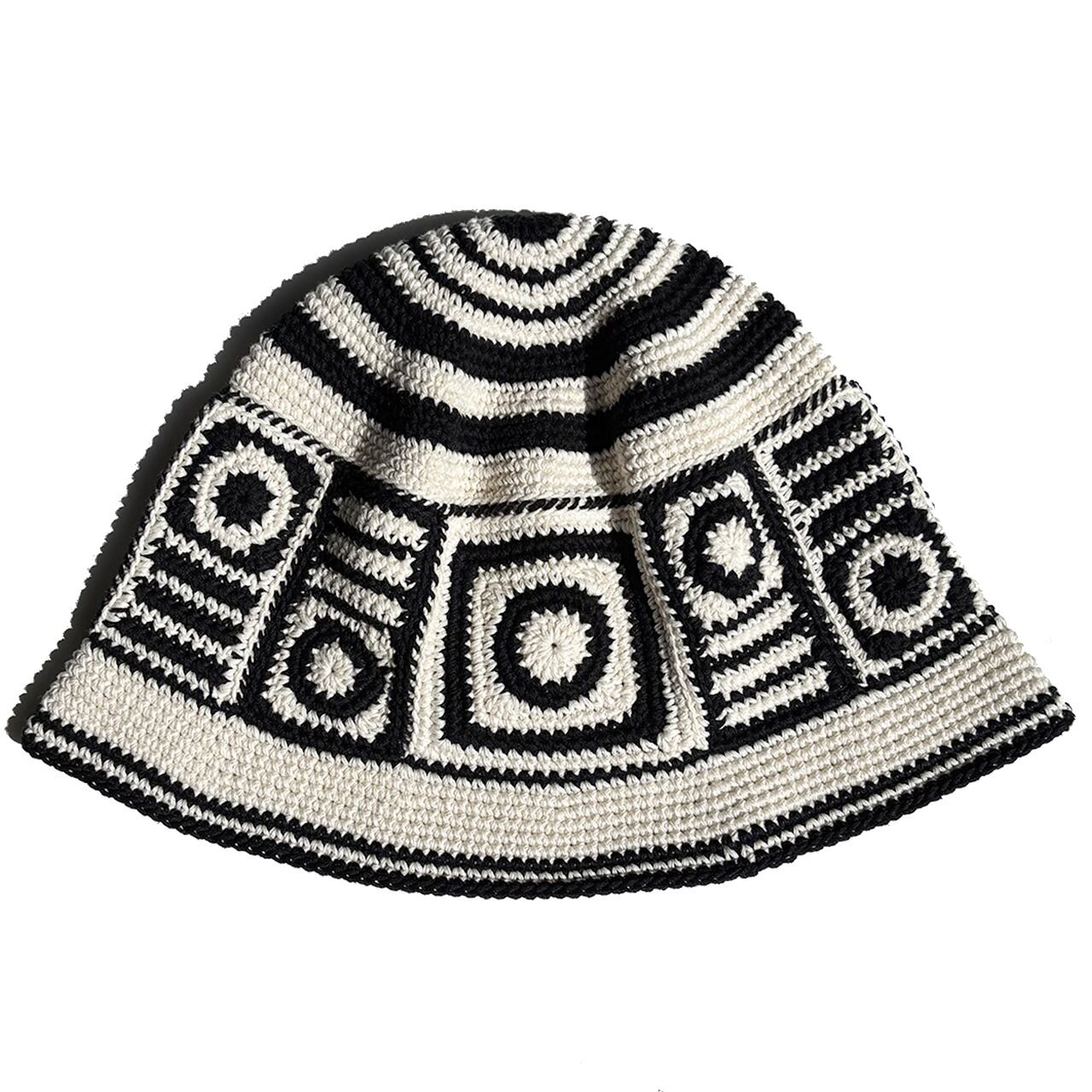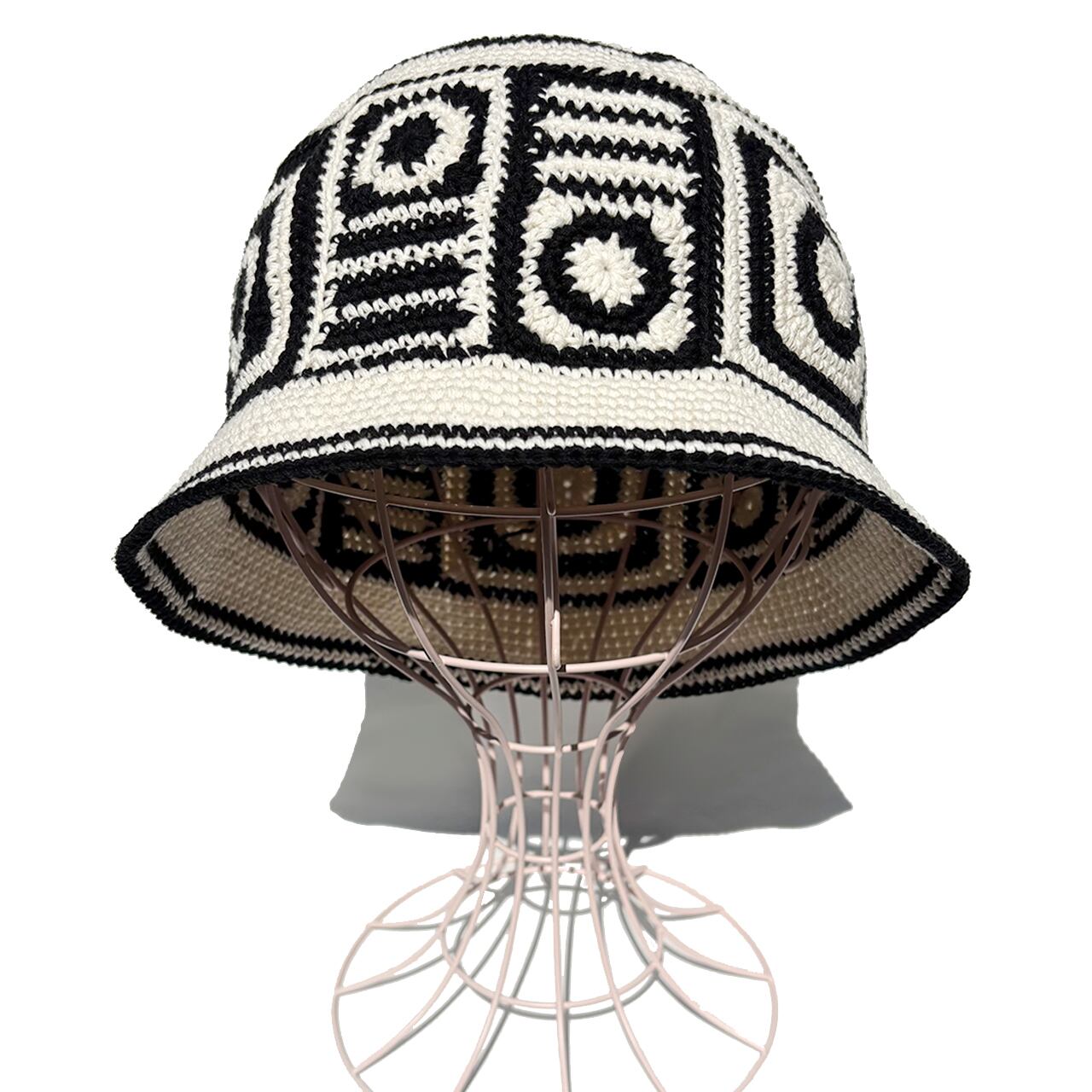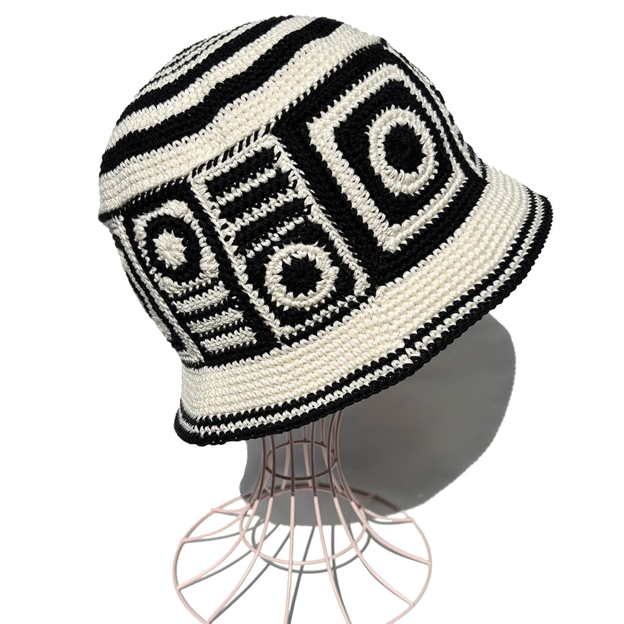 【クロシェハット】かぎ針編み CIRCLESTRIPES バケットハット OFF×BLACK