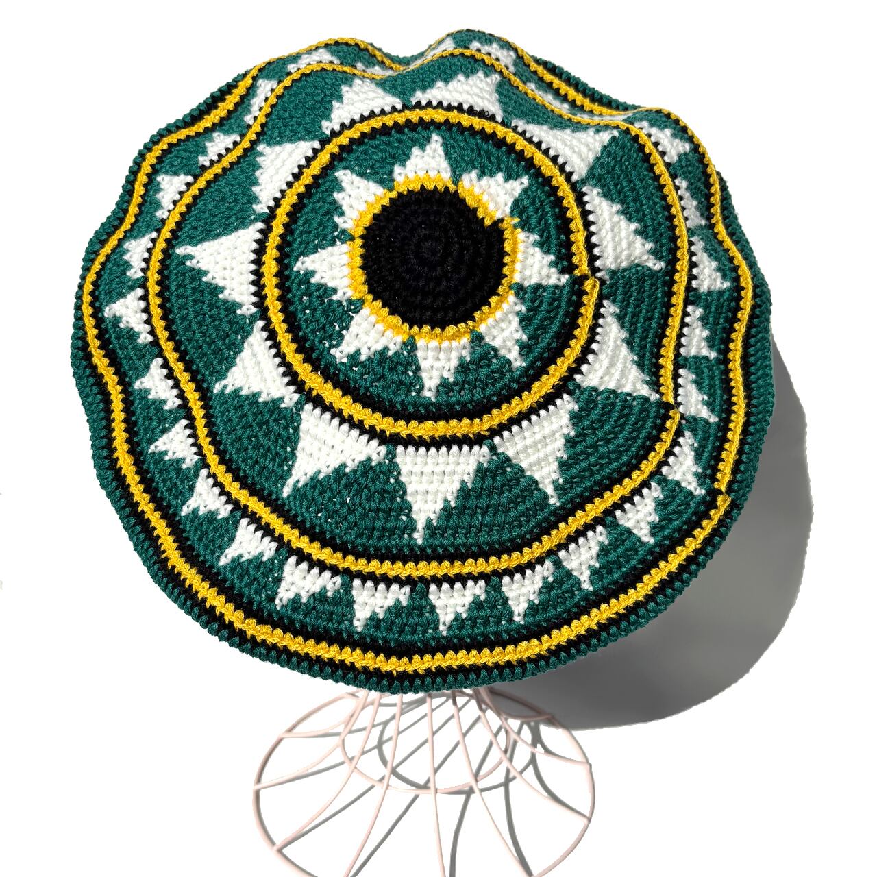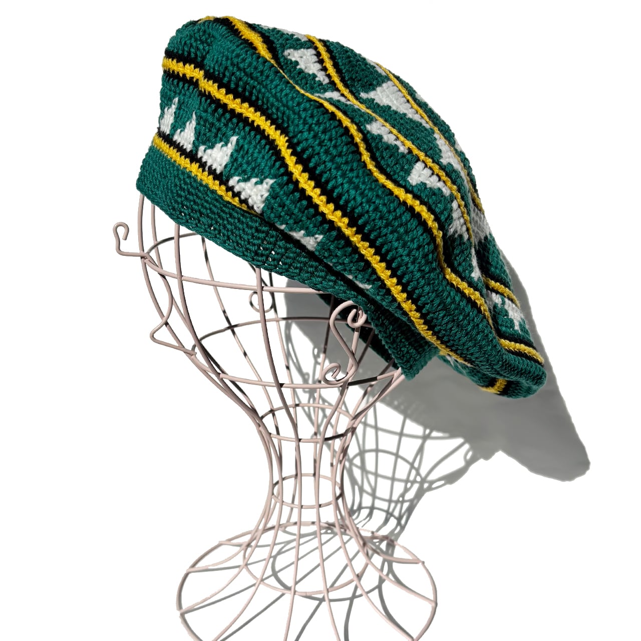 かぎ針編み、オリジナルギザギザ柄のクロシェタムベレーです(^^)