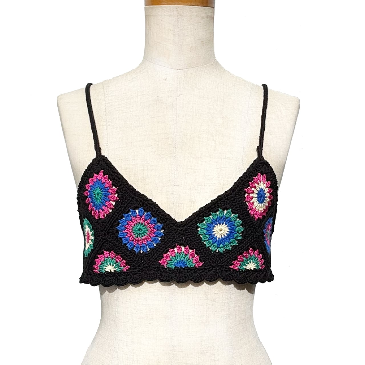 【クロシェニットビスチェ】かぎ針編み モチーフビスチェ ショート
