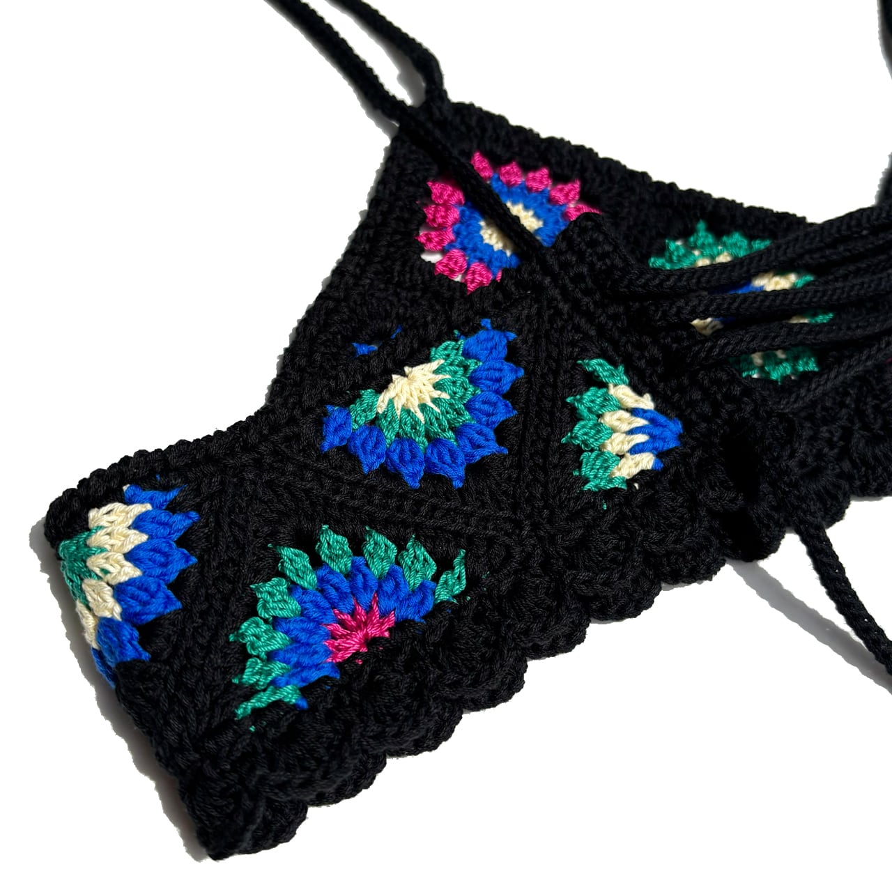 かぎ針編み、たくさんのモチーフをつなぎ合わせたクロシェビスチェです◎
