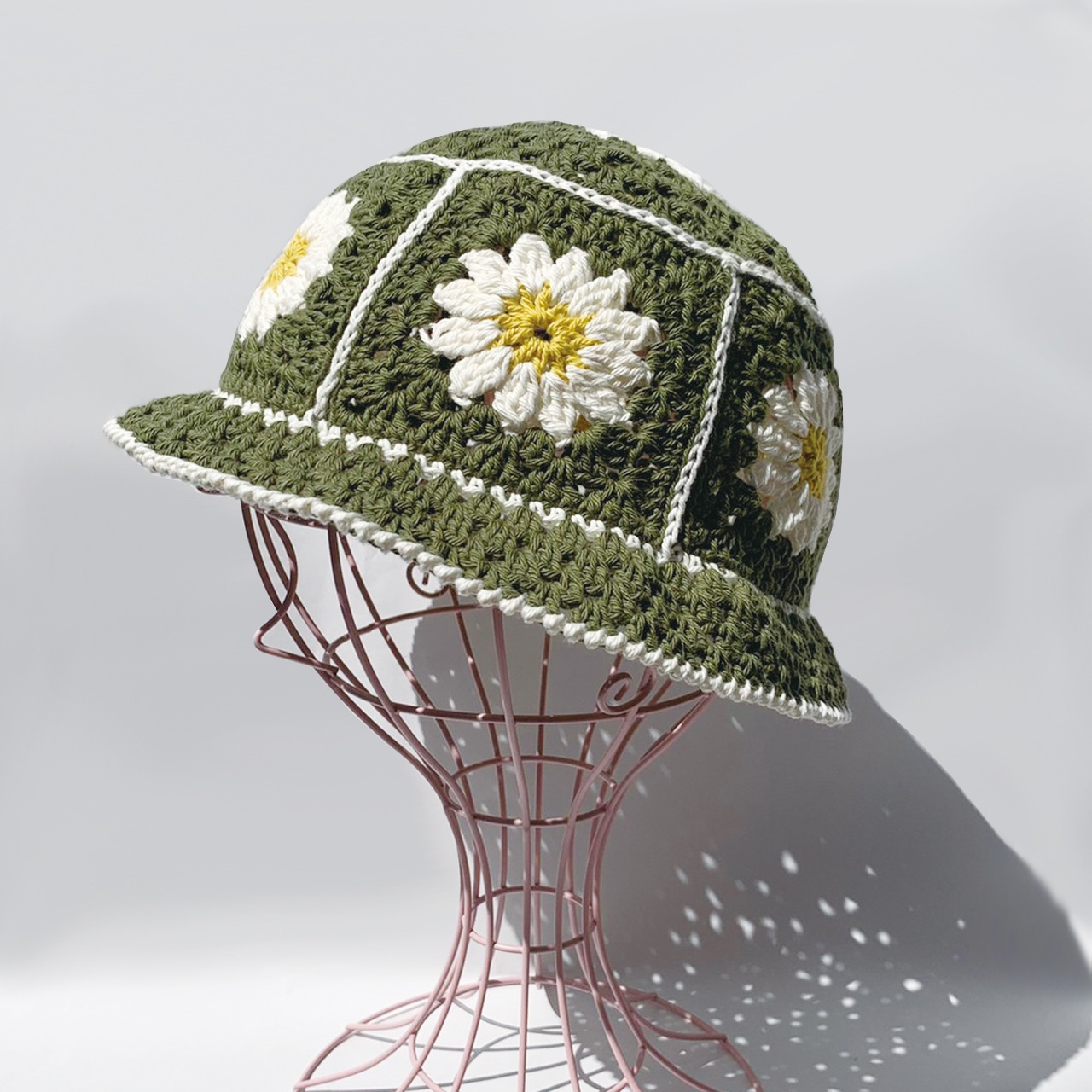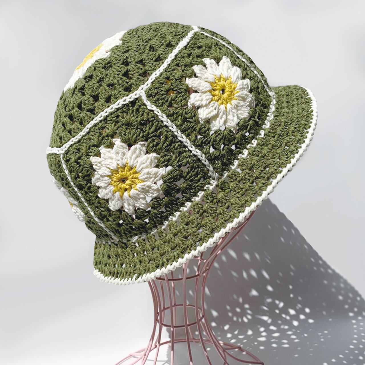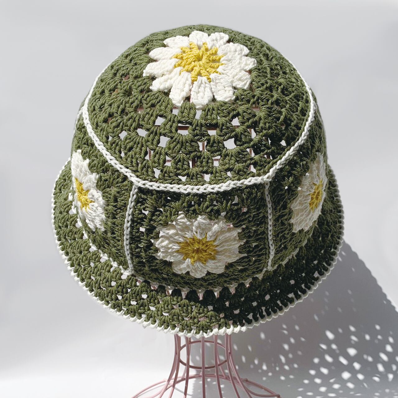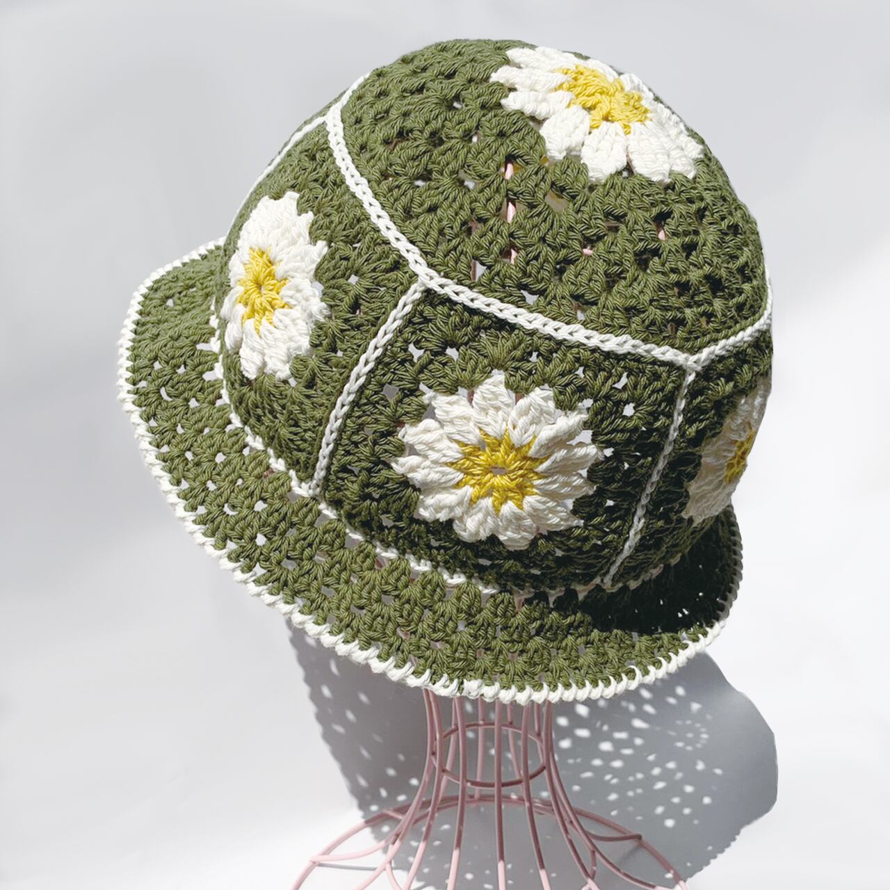 かぎ針編み、グラニーお花のバケットハット
