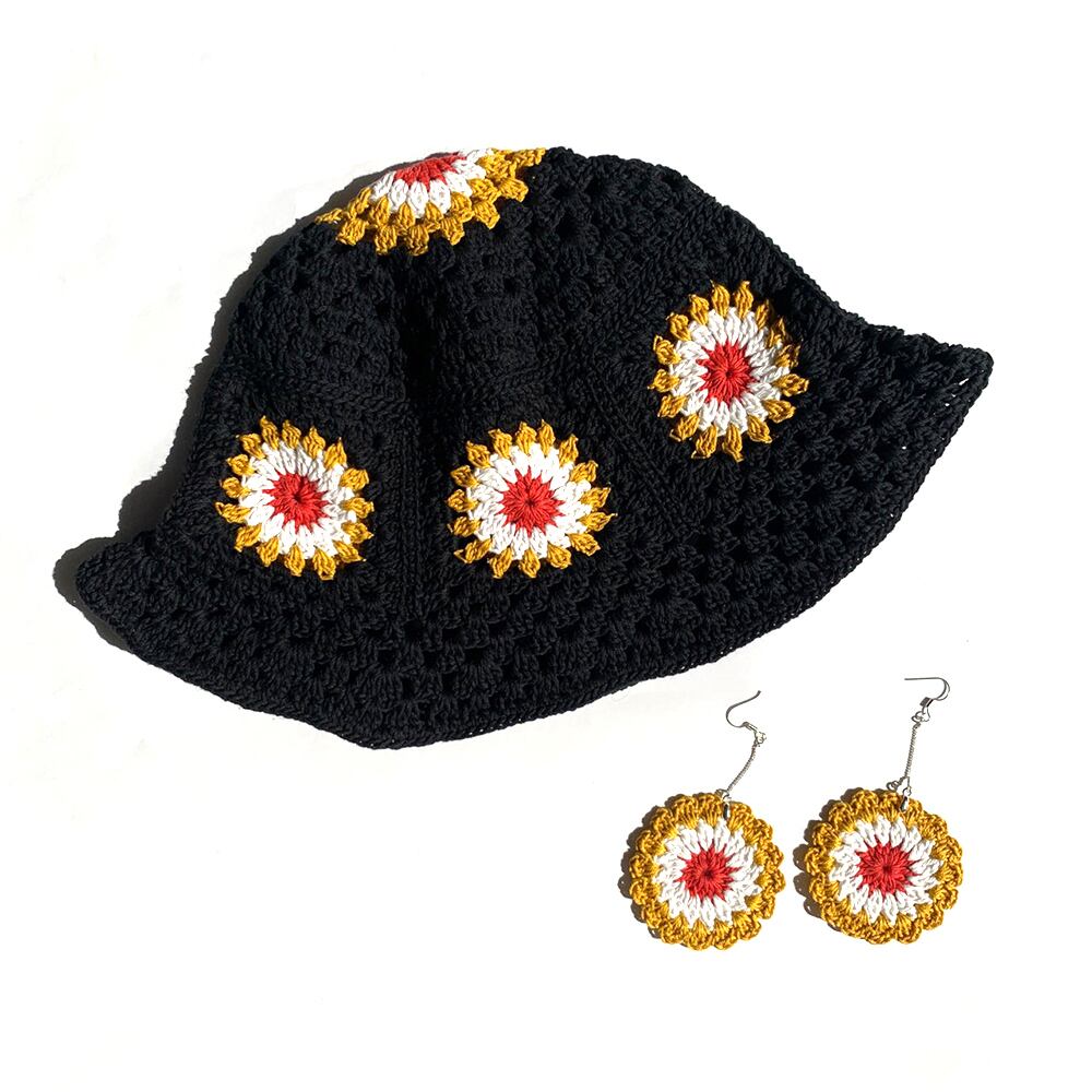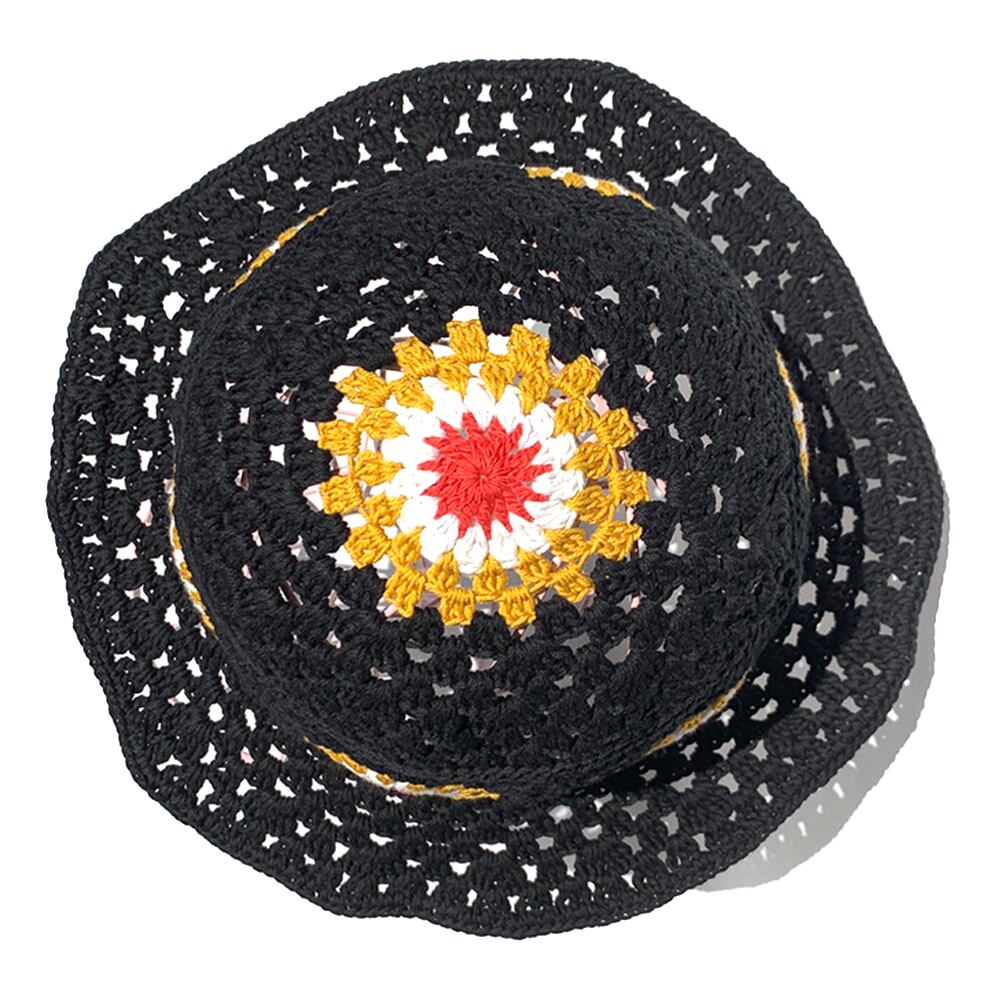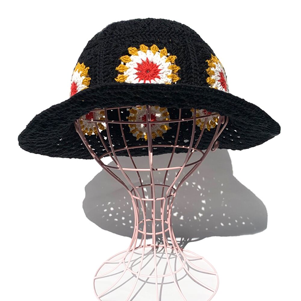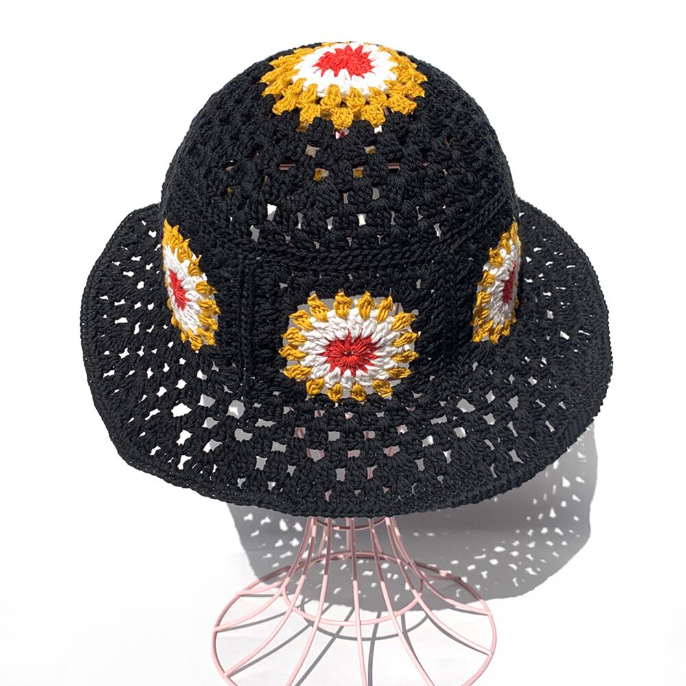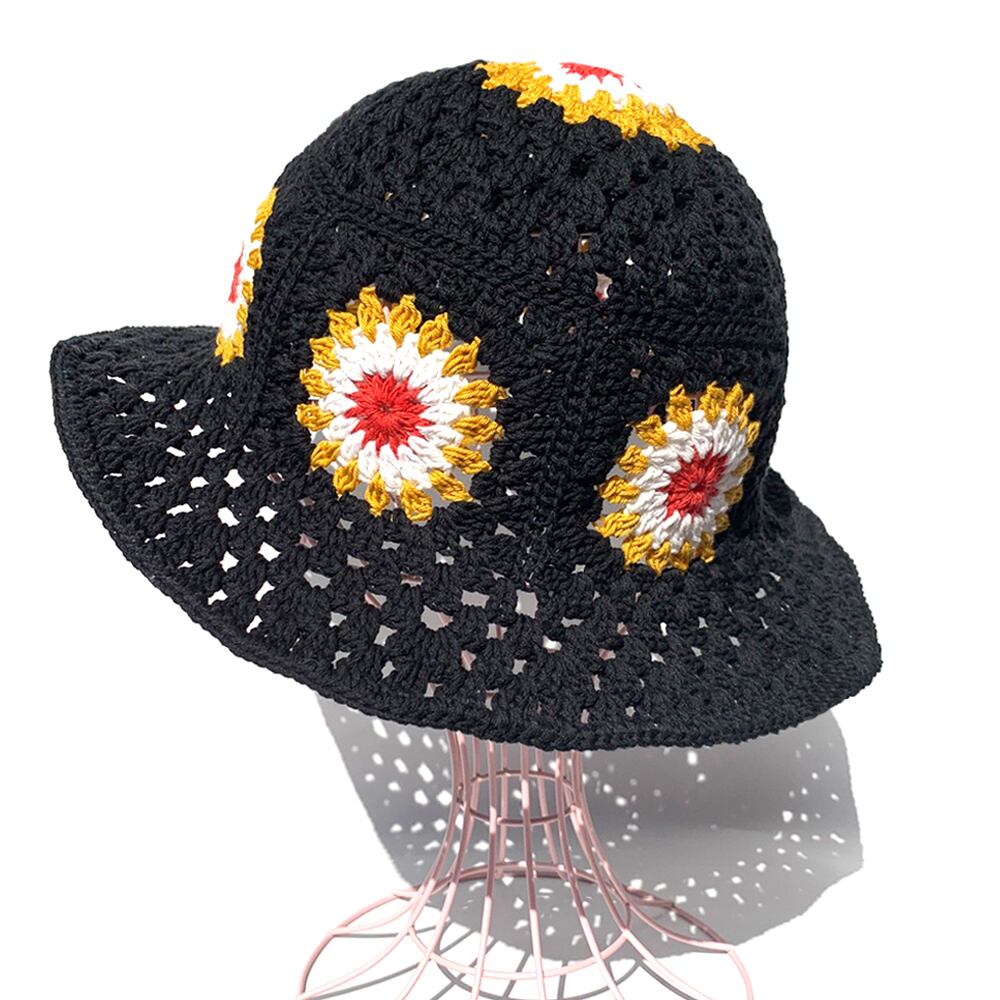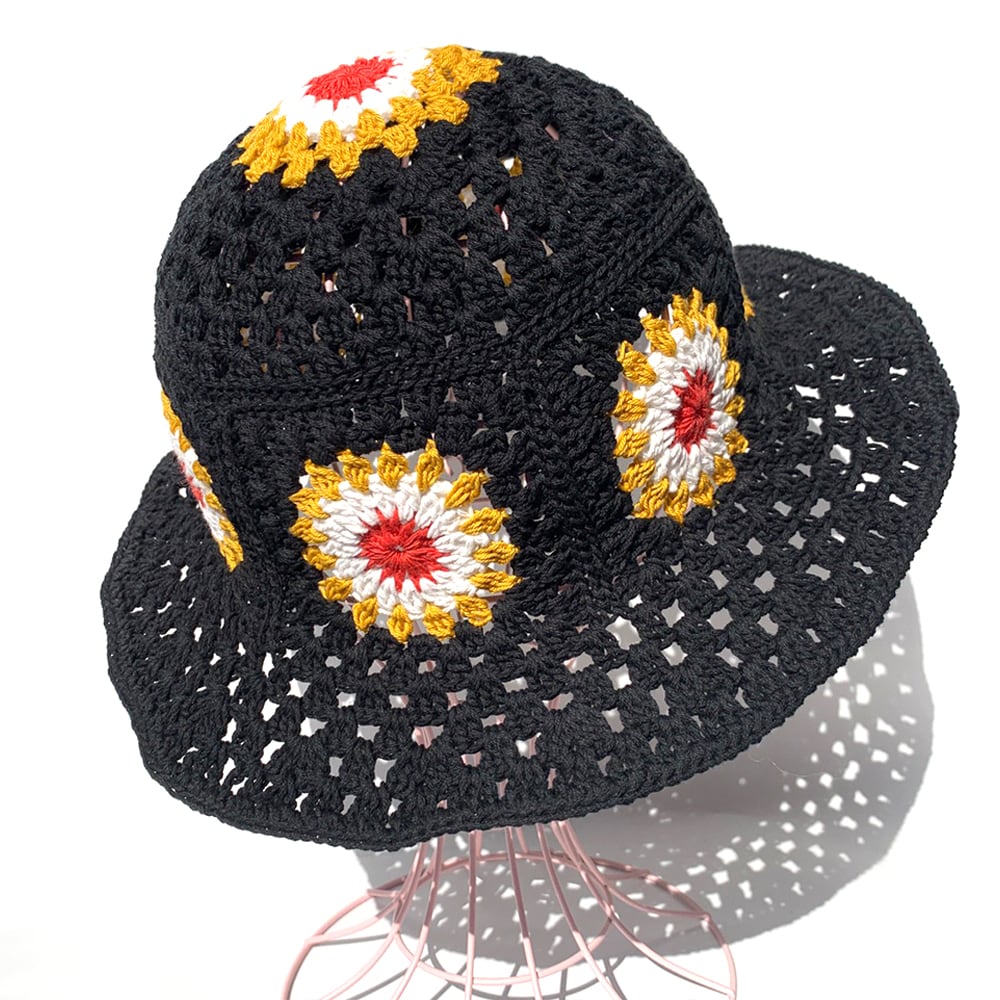 【クロシェハット】かぎ針編み クロシェハット ブラック イエロー