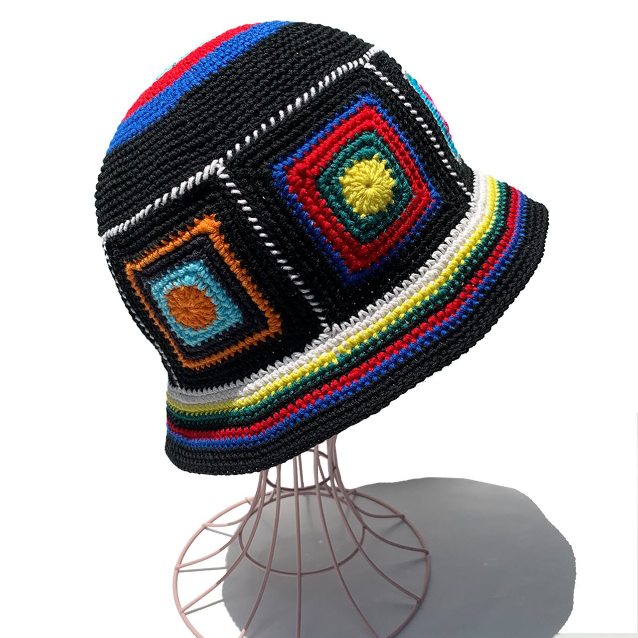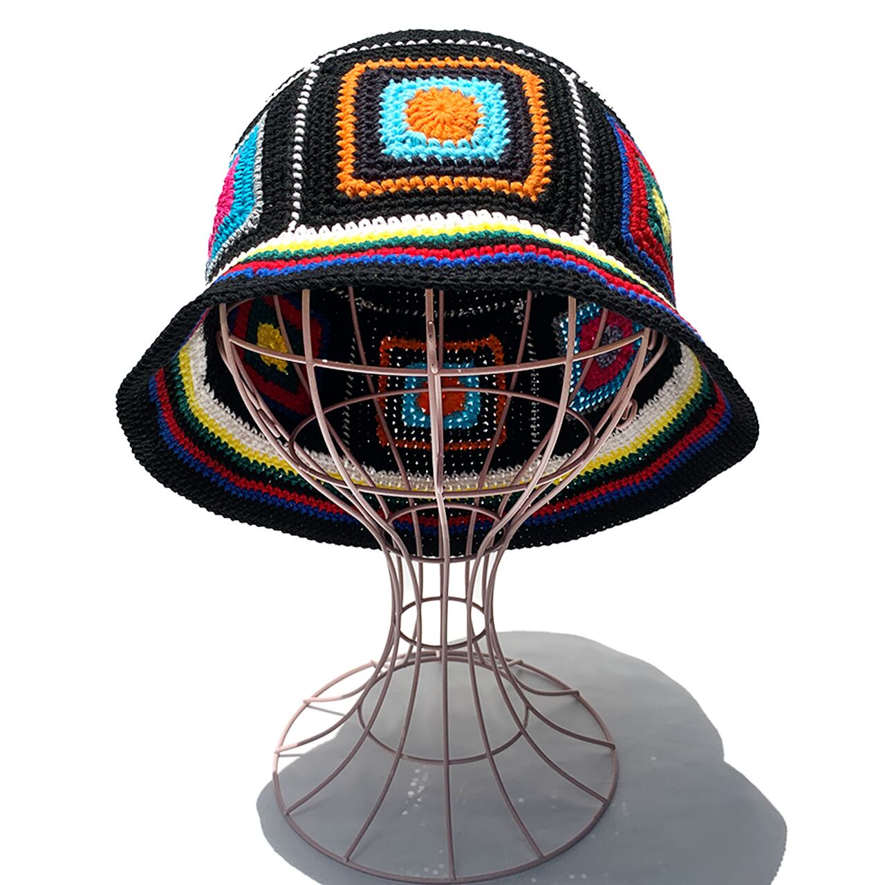 【クロシェハット】かぎ針編み クロシェ バケットハット カラフルブラック
