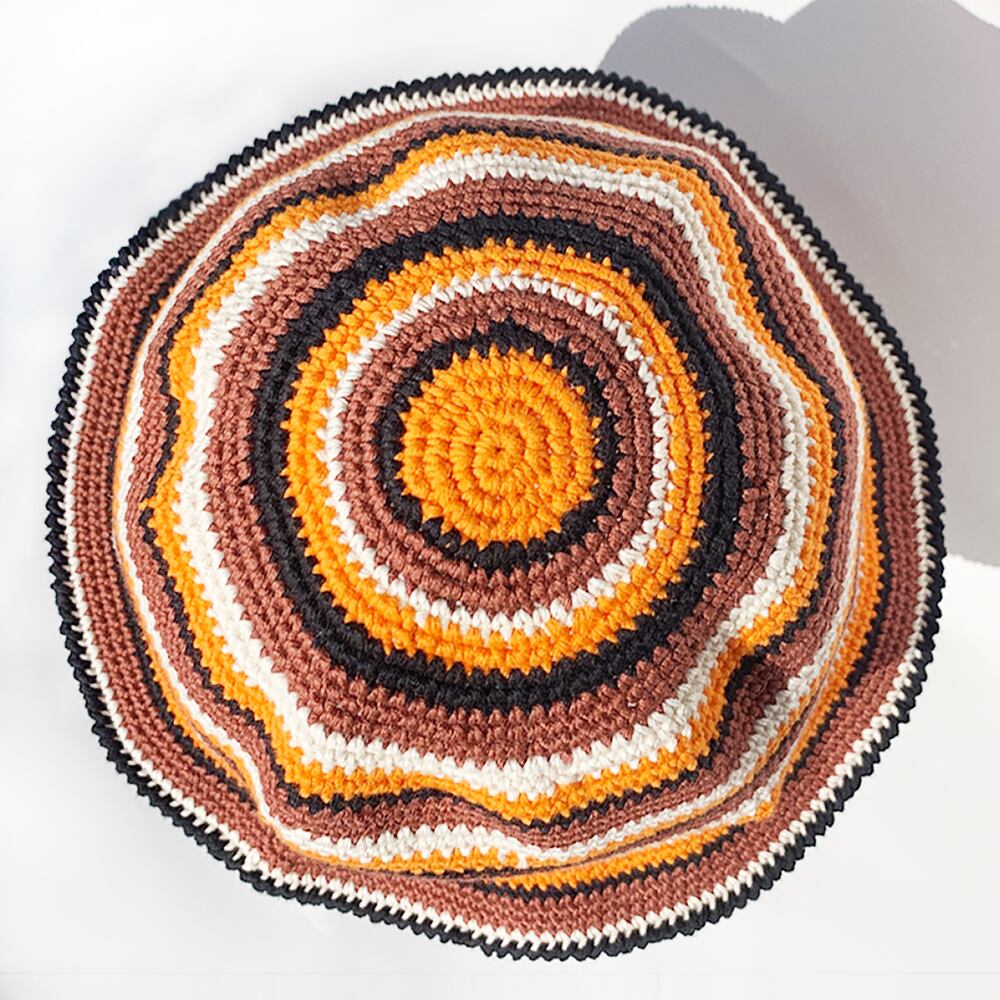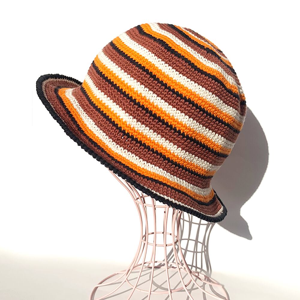 【クロシェハット】BROWN系 マルチボーダー クロシェハット