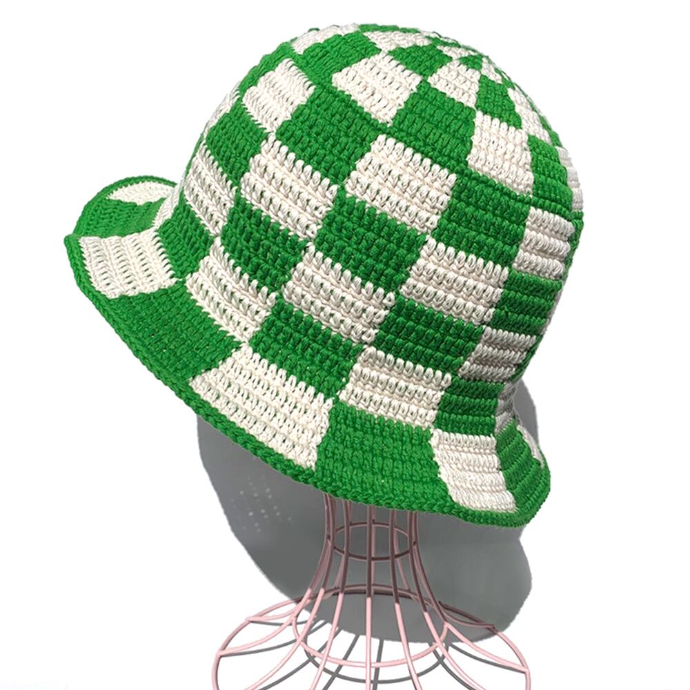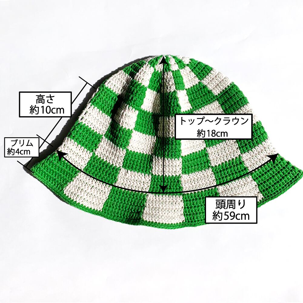 【クロシェハット】GREEN×OFF ブロックチェック バケットハット