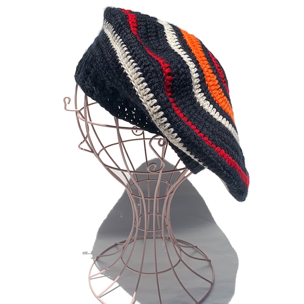 【クロシェタム】PINORI ボーダータム ベレー チャコール