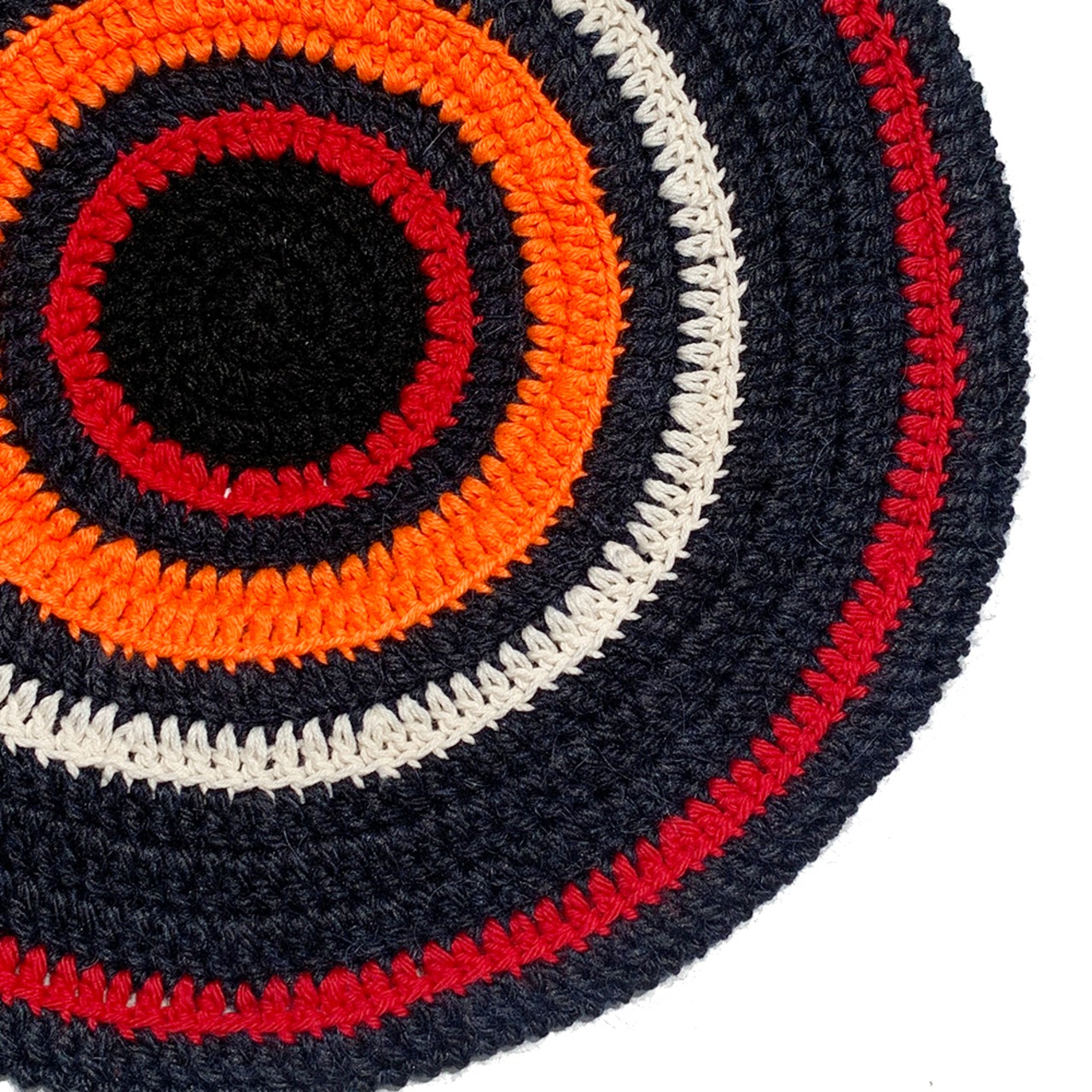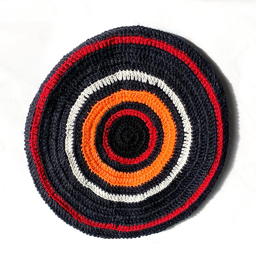 イタリア《PINORI社》の上質なチャコールグレーをベースに、RED/ORANGE/OFFのランダムボーダータム(^^)