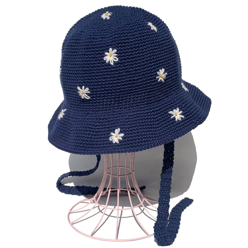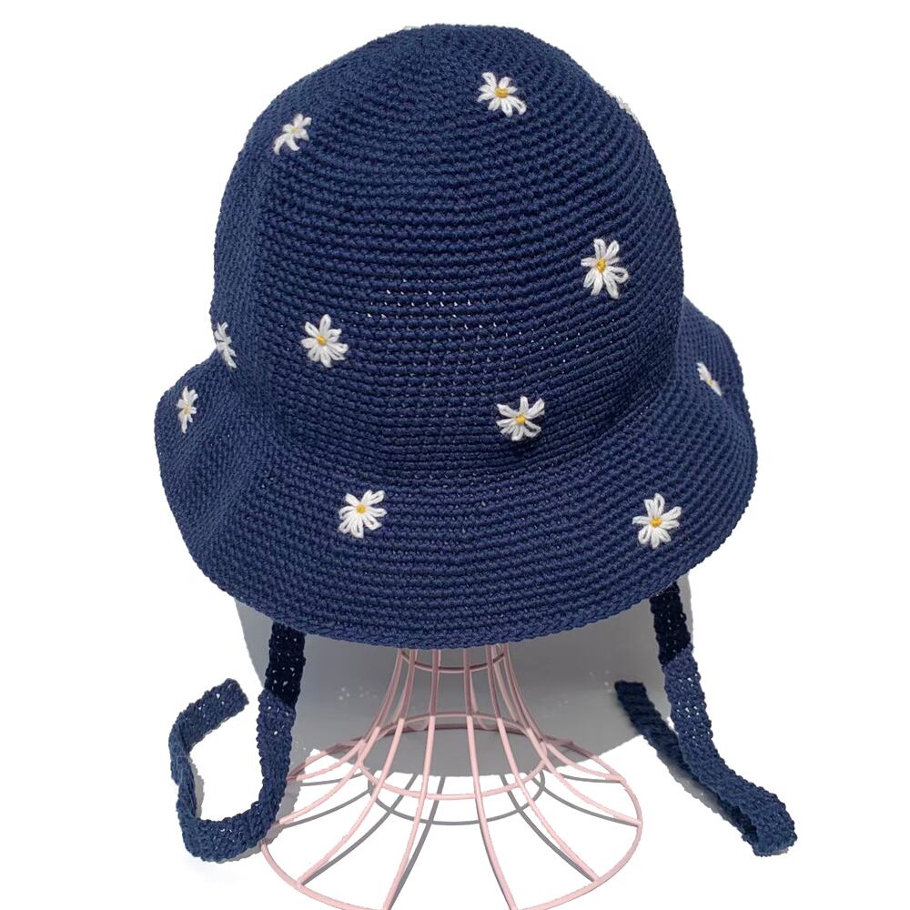 【クロシェハット】FLOWER刺繍 チューリップハット NAVY×OFF