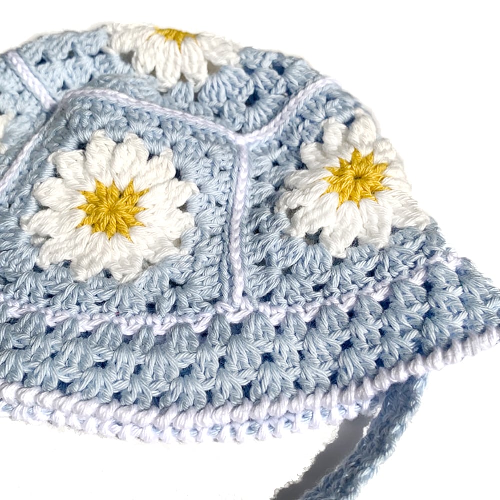 かぎ針編み、フラワーモチーフのクロシェハットです。