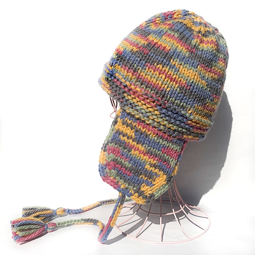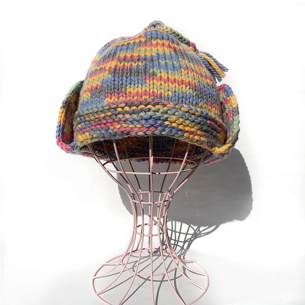 多色染め(スペースダイ)の素材を使用したフライトニットキャップ(^^)
