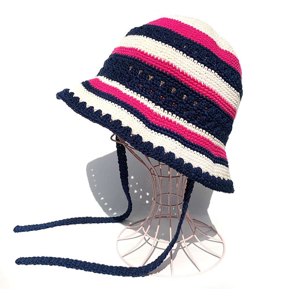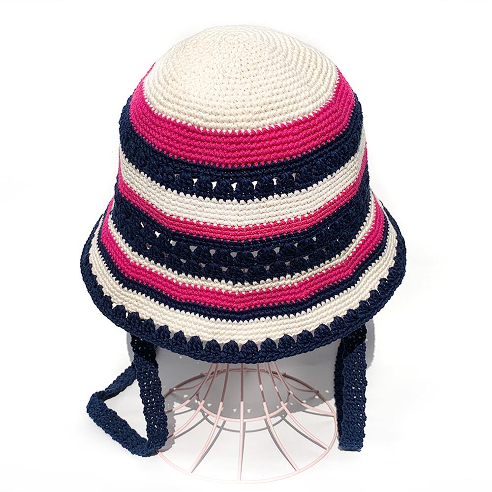 【クロシェハット】マルチボーダー バケットハット ピンク