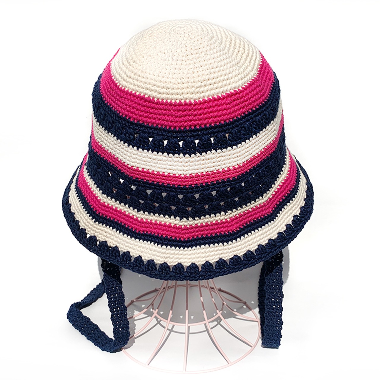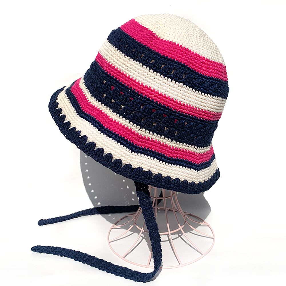 OFF×NAVYのベーシックカラーに、ピンクが目を惹くクロシェハットです(^^)