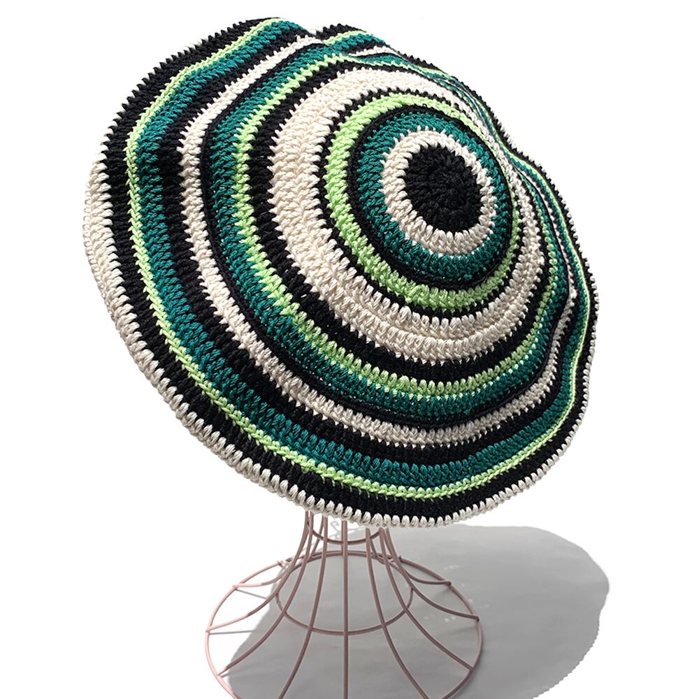 かぎ針編み、マルチボーダーのクロシェタムベレーです(^^)