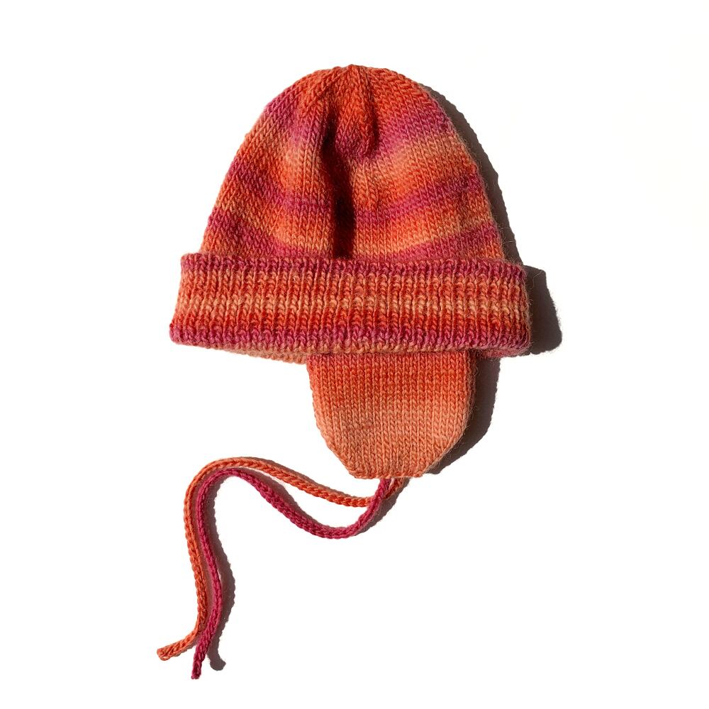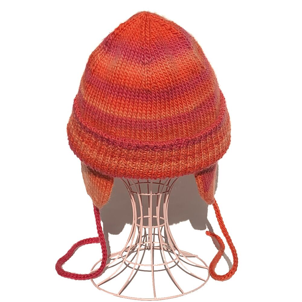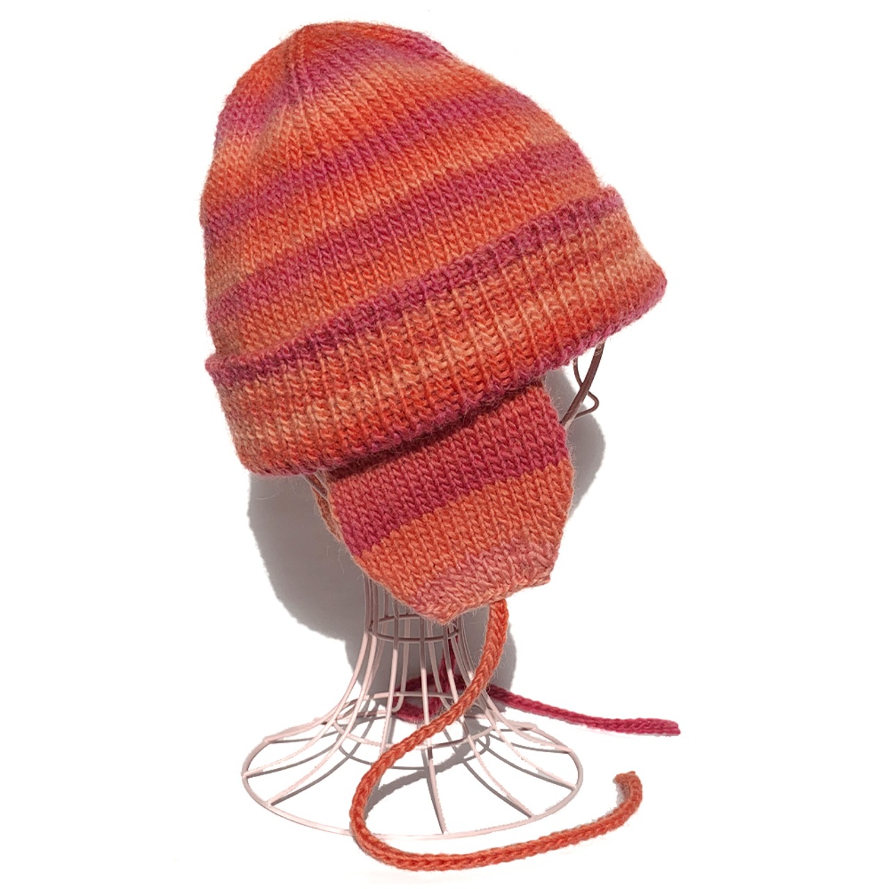 多色染め(スペースダイ)のグラデーションが目を惹くフライトニットキャップです(^^)