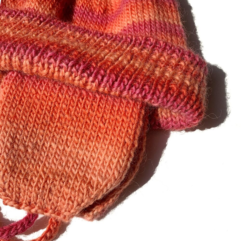 被り口のリブを長めに編んでいるので、±1㎝程度折り返し巾の調節が出来ます。