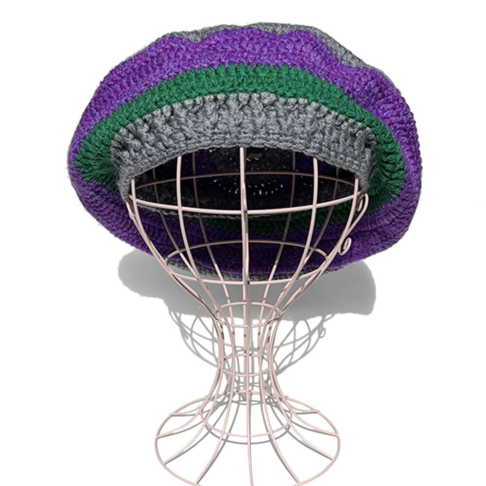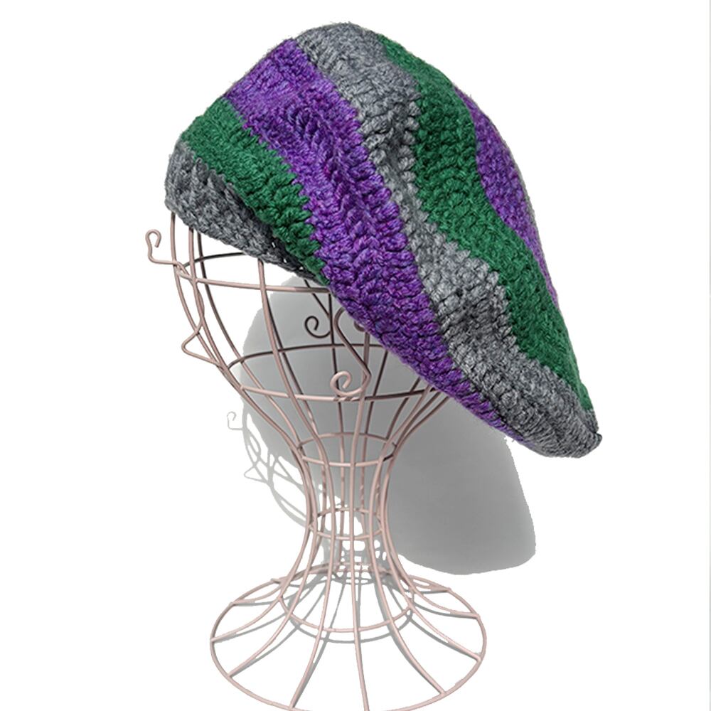 かぎ針編み、ワイドボーダーのクロシェタムベレーです(^^)